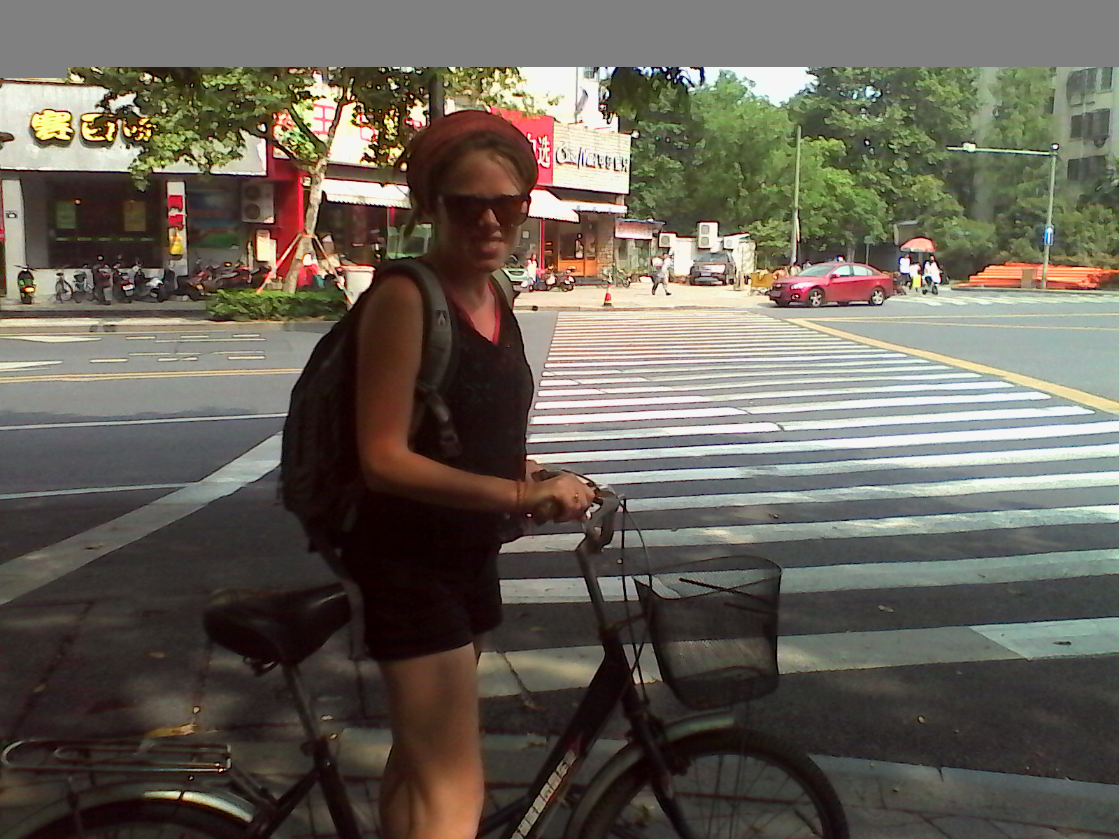 Here’s me on my new bicycle. I picked this lucky winner out of the bunch by asking the bicycle-shop-owner which one was the least likely to get stolen.