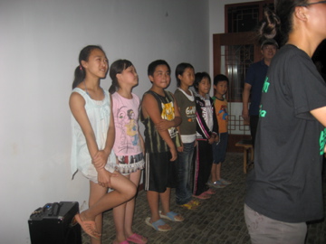 After one presentation, Liao Xiao-yi became quite upset with the volunteers (there were about five of us), and said that we should be using our afternoon ‘summer camp’ to prepare the kids for these performances, and that from then on that was how the summer camp needed to be utilized (we had also been using it to play games and teach English/culture lessons). She said that the year before there was only one person running the camp and the performances were still so much better. So we had a pow-wow and one of the volunteers came up with an alternative and more challenging song to teach them, here’s an excerpt: