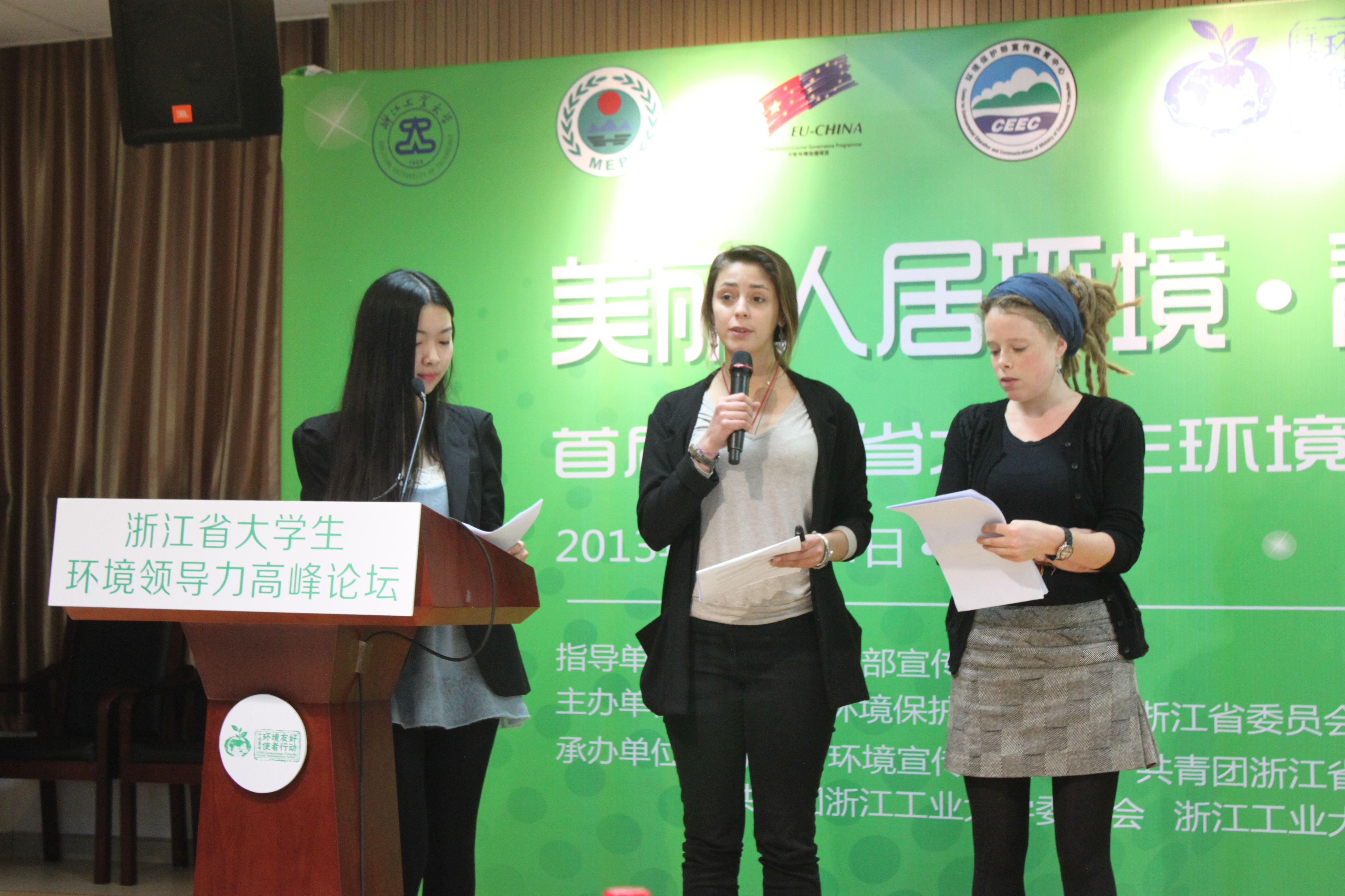 Coincidentally, just after I wrote my last post I was invited to give a presentation with another current Global College student, Paloma Criollo, and GC staff member, Eoife Huo, at Zhejiang’s ‘Youth Environmental Leadership Summit’ that is organized by the central and provincial government’s Environmental Protection Bureau (EPB). Our presentation was on youth leadership and on-the-ground initiatives in the international climate justice movement.